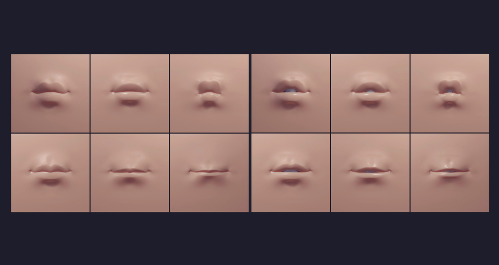 This pack contains a vector displacement mesh (VDM) brush with 6 lips for Zbrush. Each pair of lips has both a closed and open mouth variation, so 12 lips in total (see images)