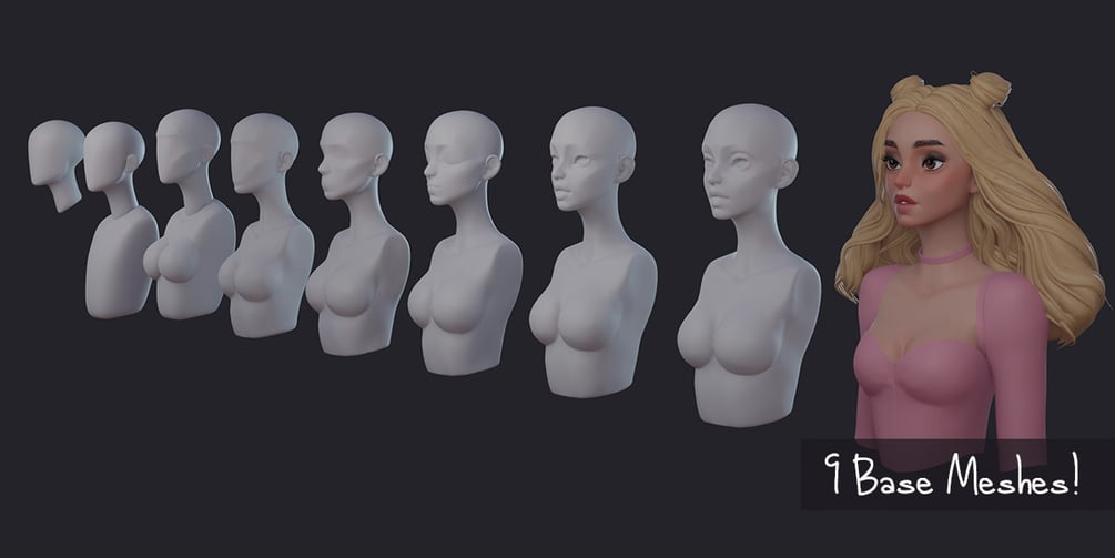 9 base meshes to level up your art by focusing on the fundamentals of shape and proportion instead of worrying about the software!