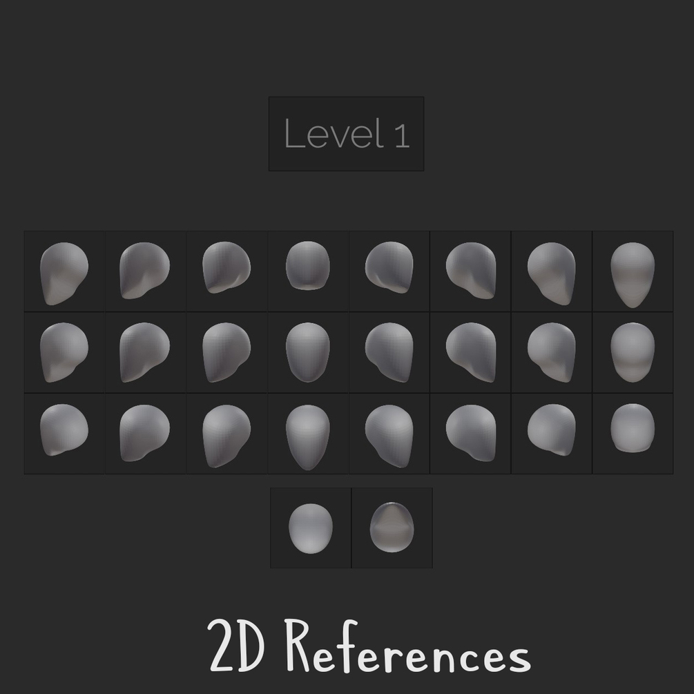 - 8 3D Reference meshes (OBJ's and contained in Blender Scene File)