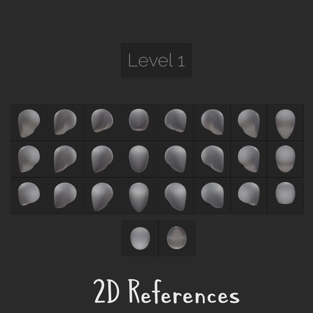 - 8 3D Reference meshes (OBJ's and contained in Blender Scene File)
